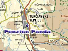 Reštaurácia a penzióny PANDA**1 a PANDA*2 sú situované v malebnom centre horného Turca v Turčianskych Tepliciach. Mesto je známe ako jedinečné kúpeľné centrum, ktoré sa ako jediné na Slovensku okrem liečby pohybového ústrojenstva špecializuje na liečbu urologických ochorení. Okolitá prekrásna príroda je ideálnym miestom pre oddych a regeneráciu s možnosťou využitia kúpeľných procedúr.